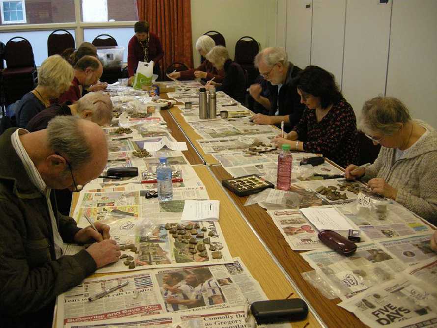 Marking and cataloguing flintwork from Peacehaven in Feb 2012 |