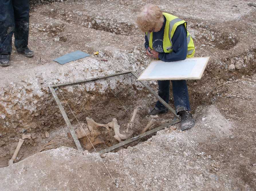 Excavating a Saxon or medieval horse at Patcham May 2013 |