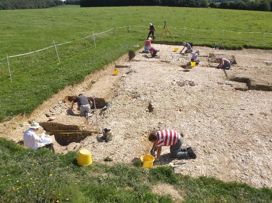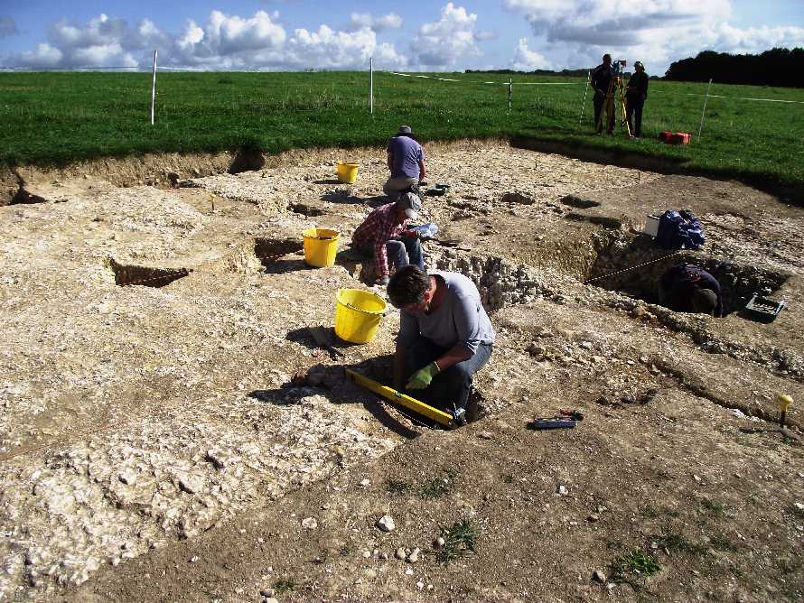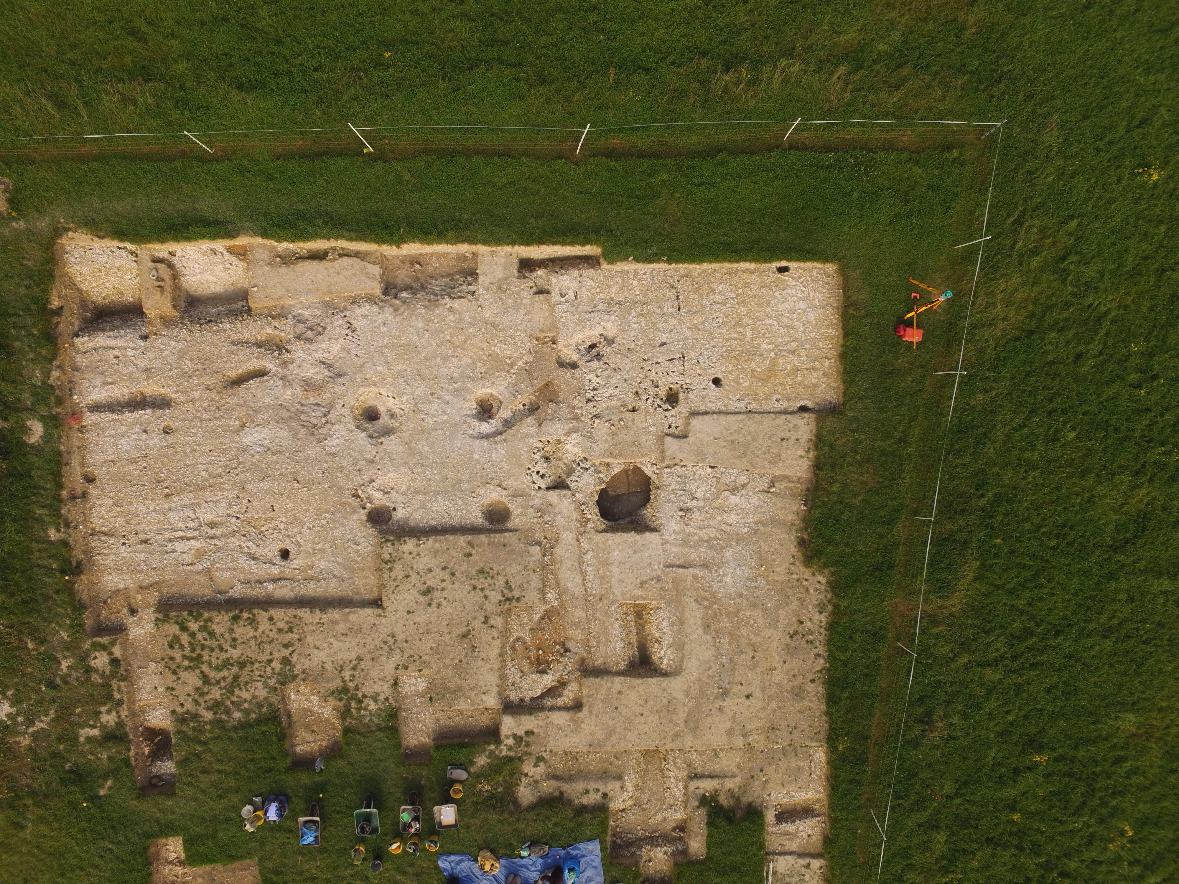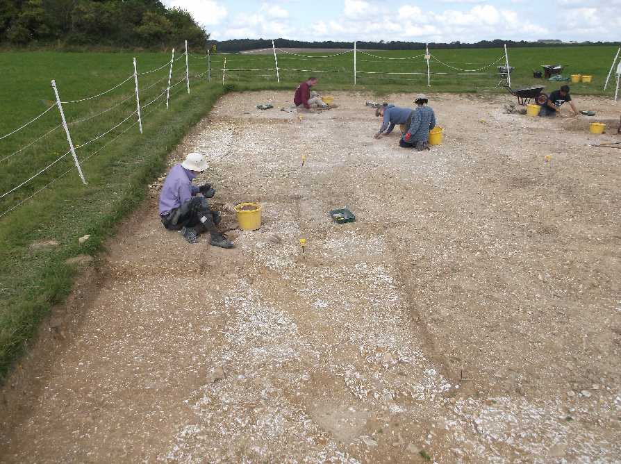 An area of curving flints and post holes (late Aug-Oct 2021) |