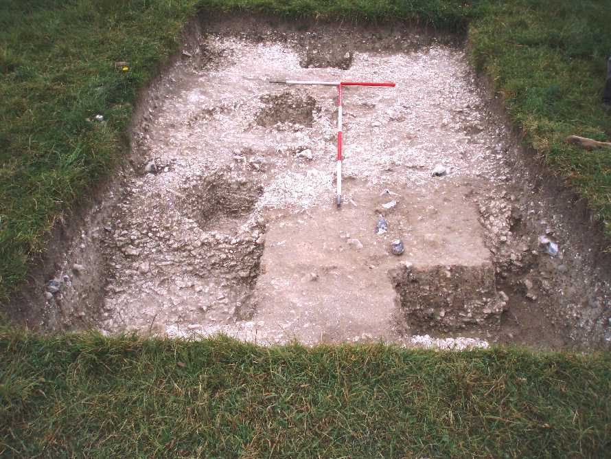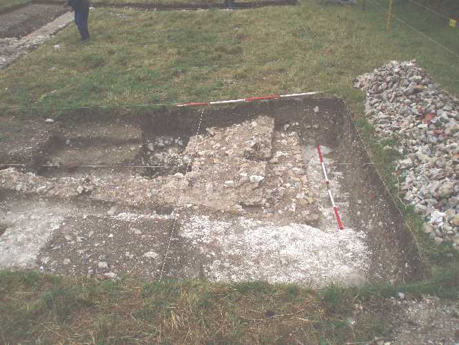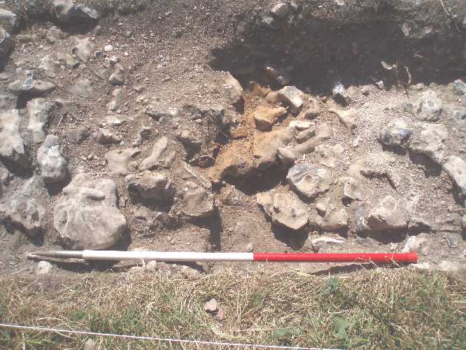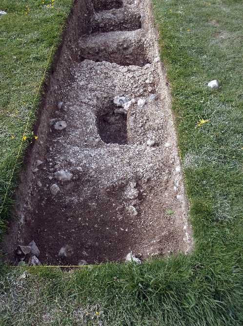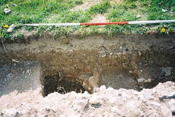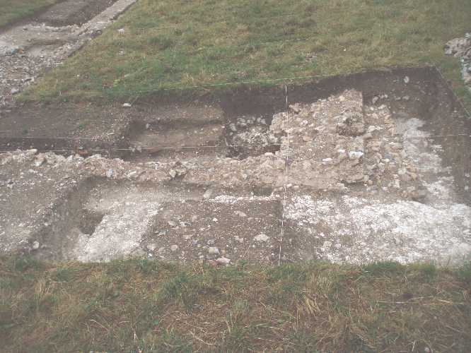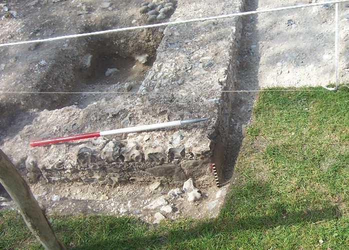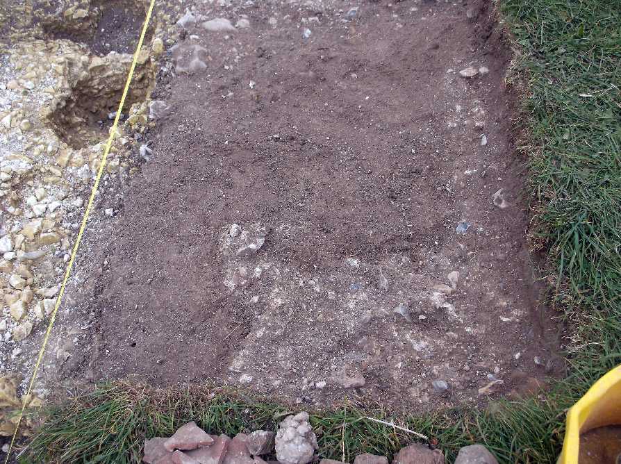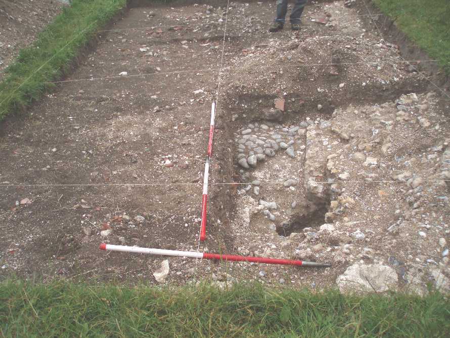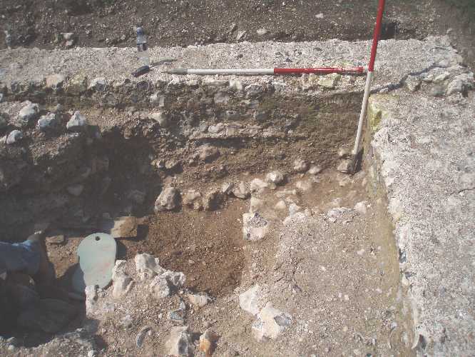 The south west corner showing a hole cut for stone robbing July 2009 |