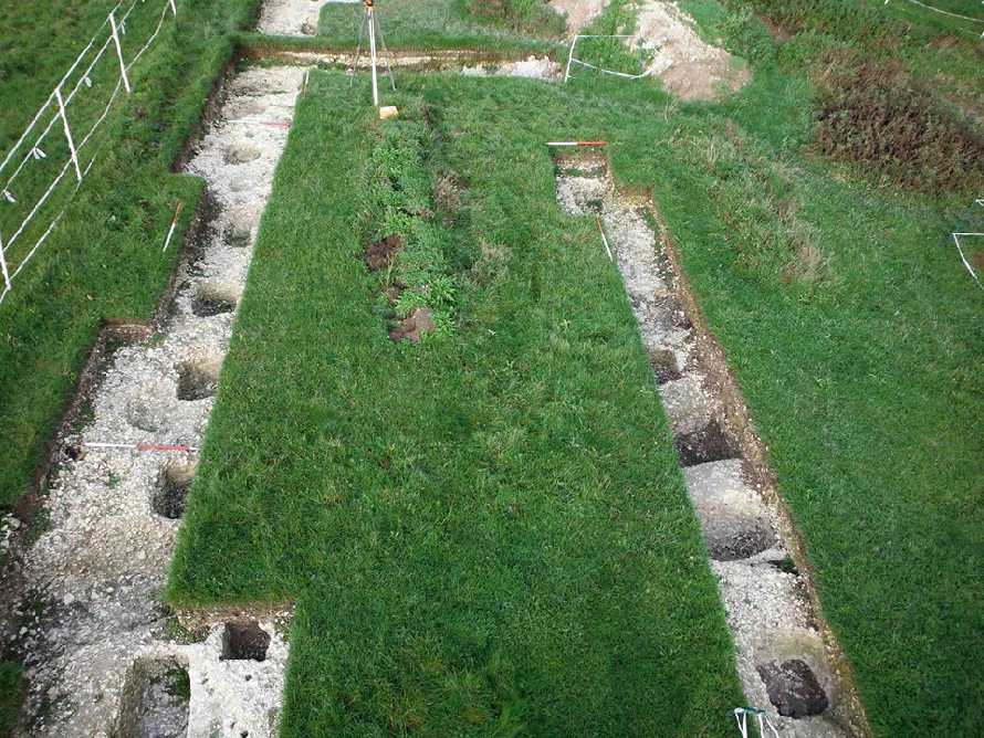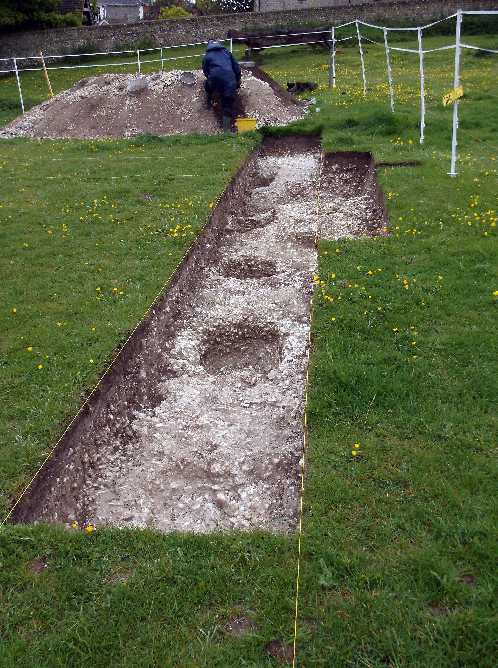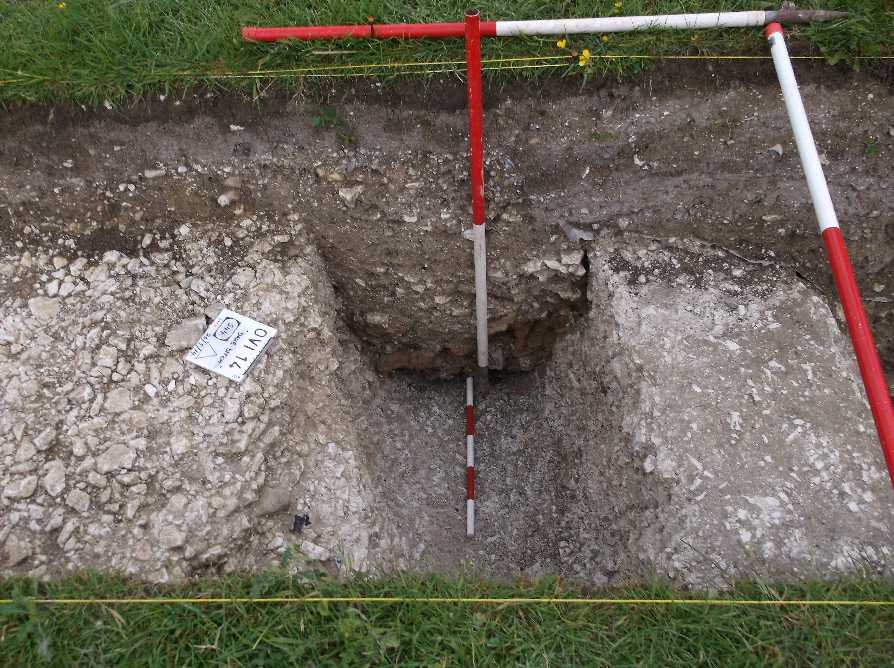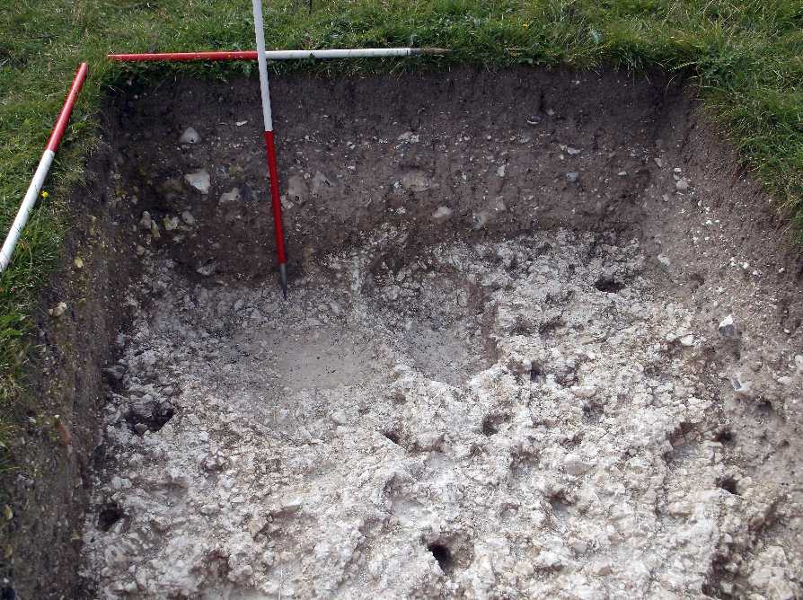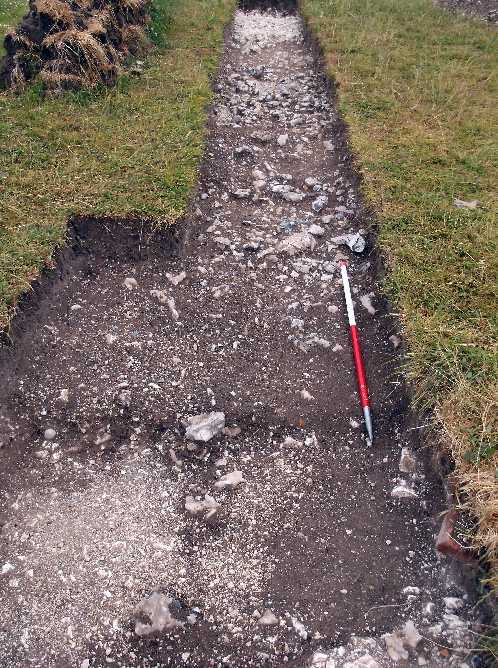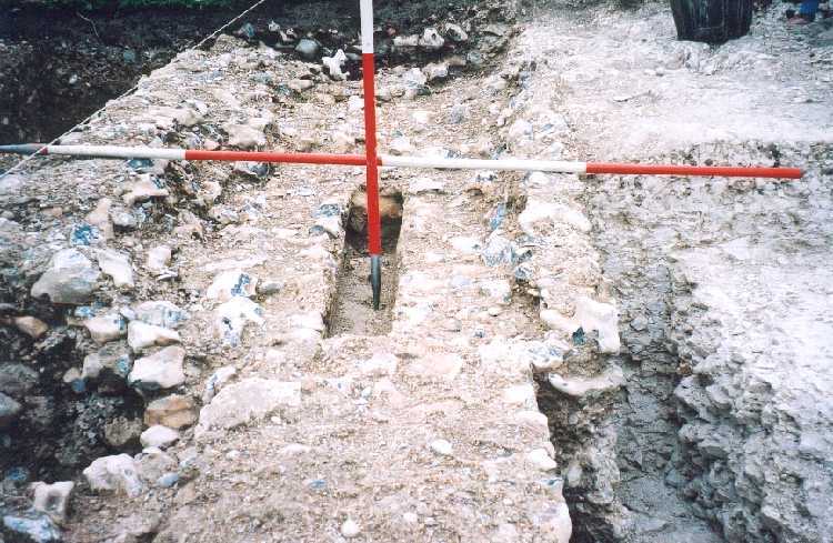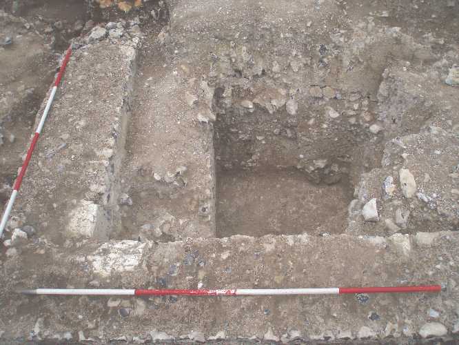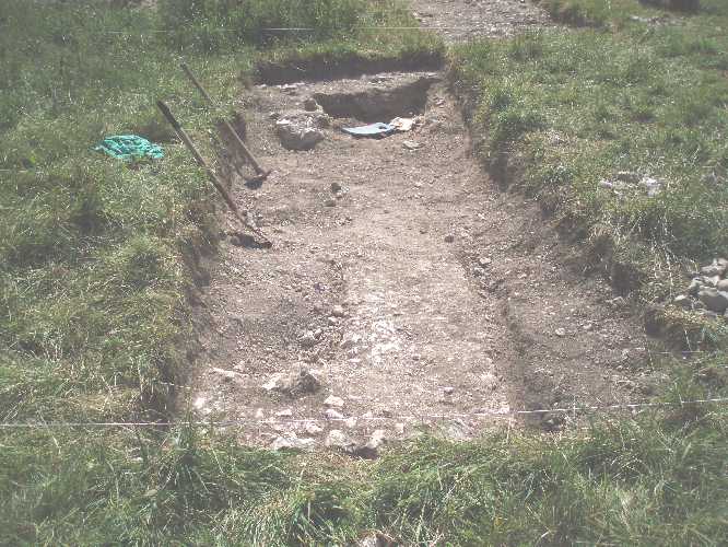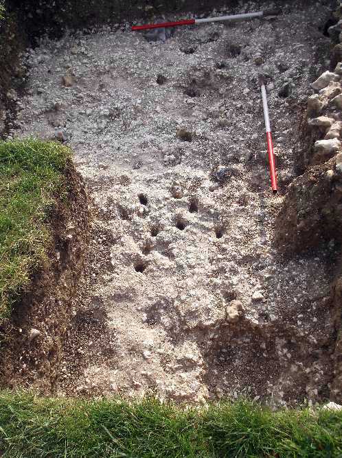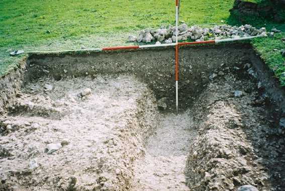 The south west corner showing a hole cut for stone robbing July 2009 |