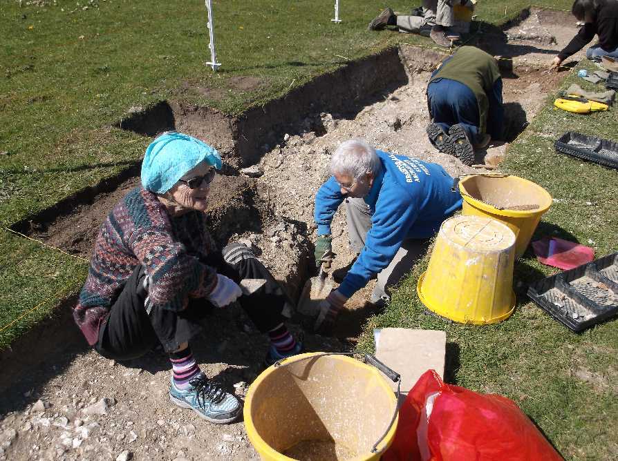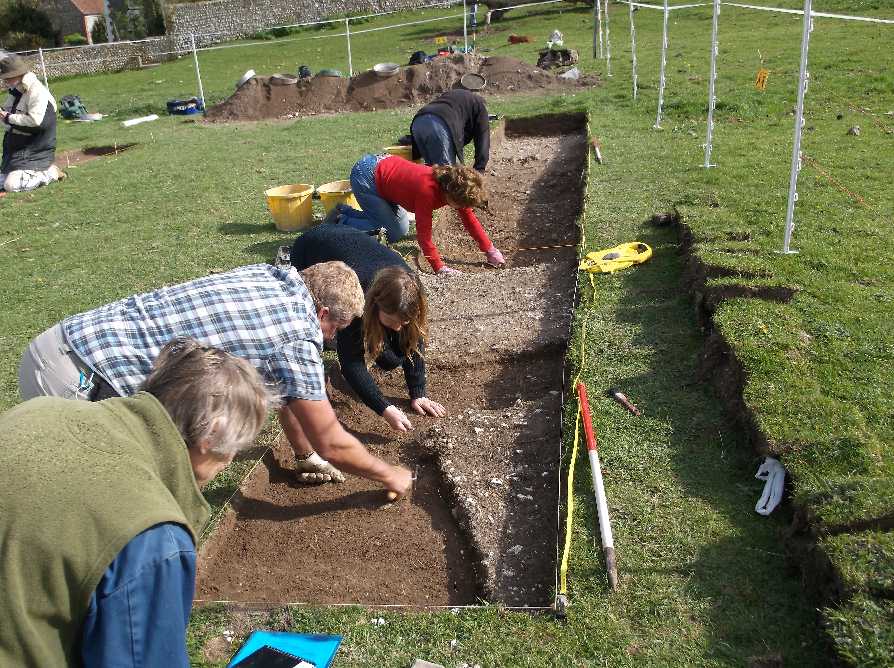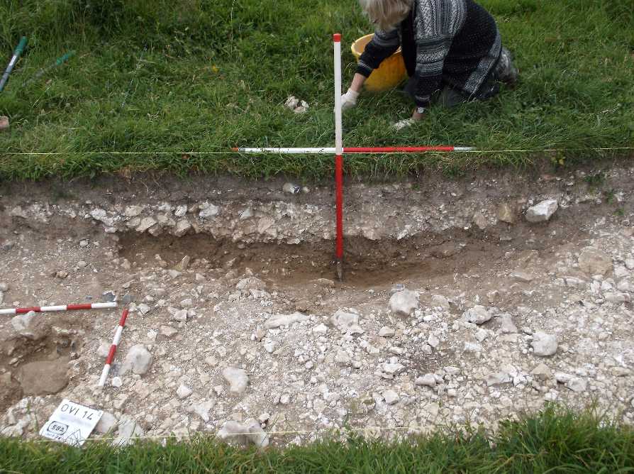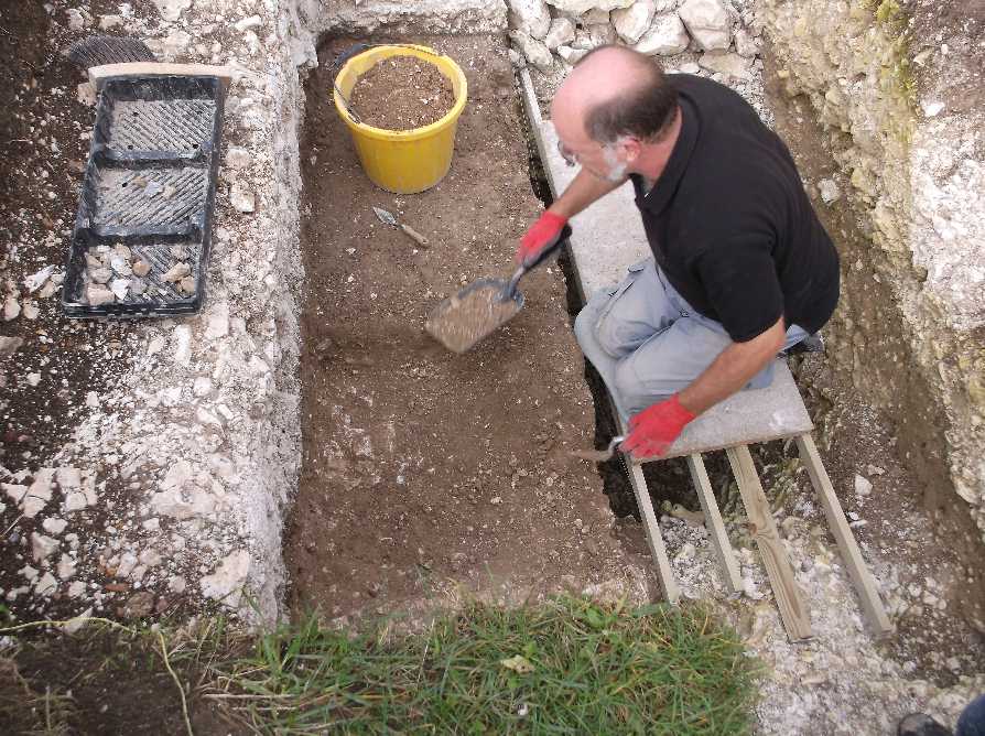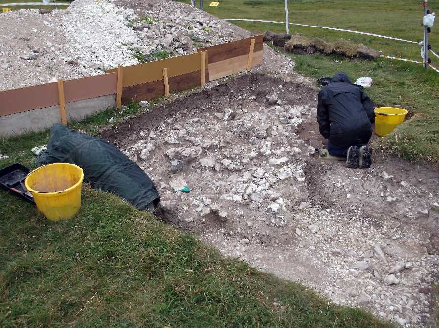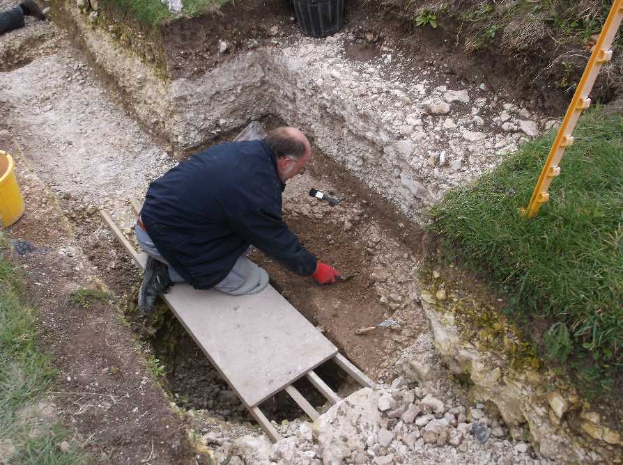 Working in removing the upper fill sin trench 'J' December 2014 |