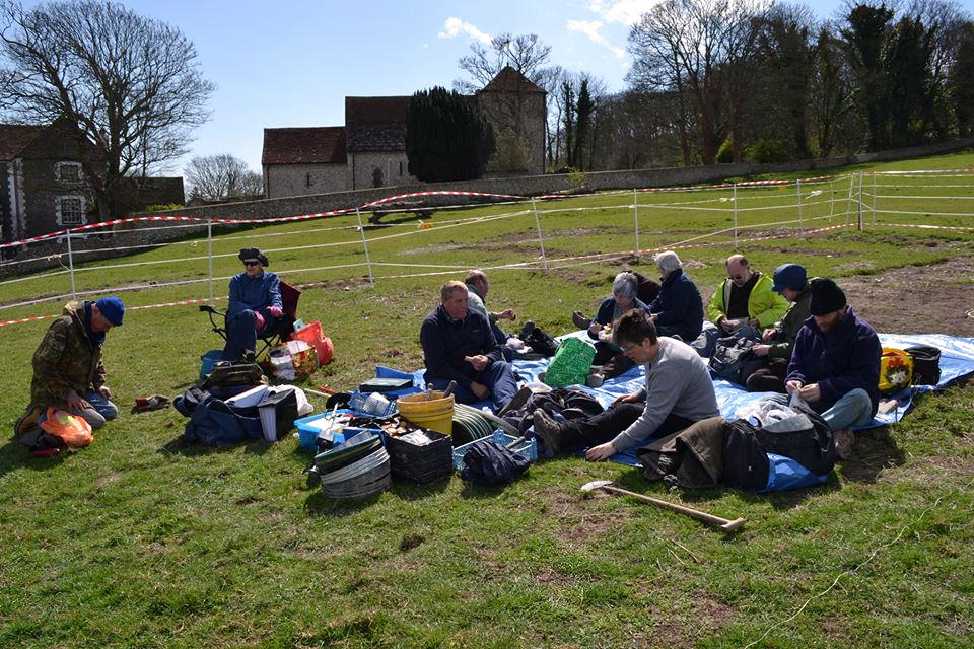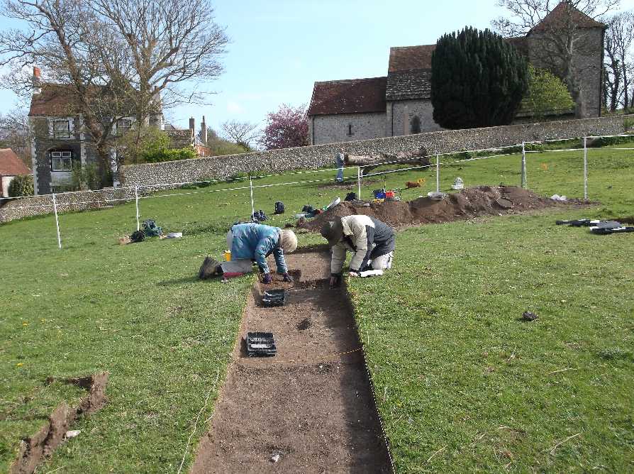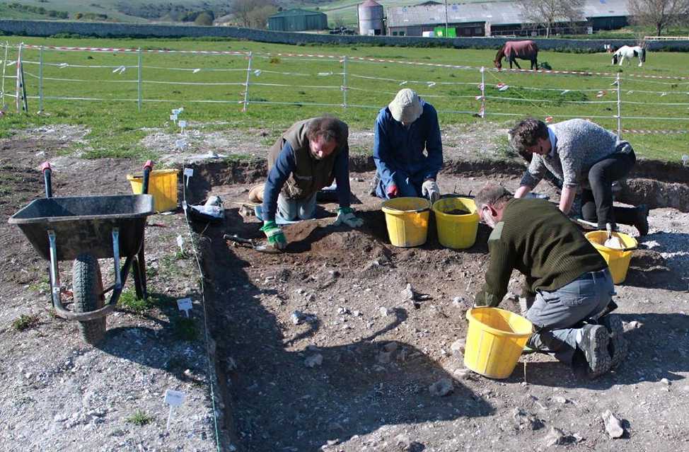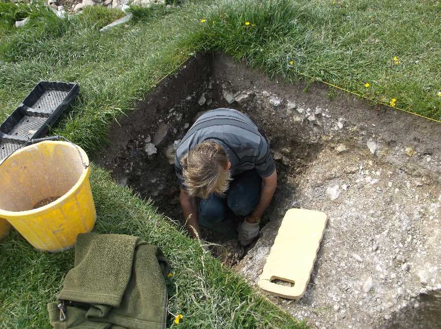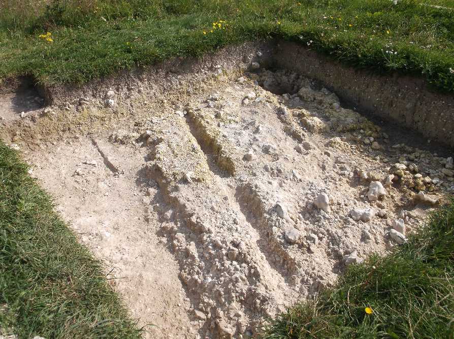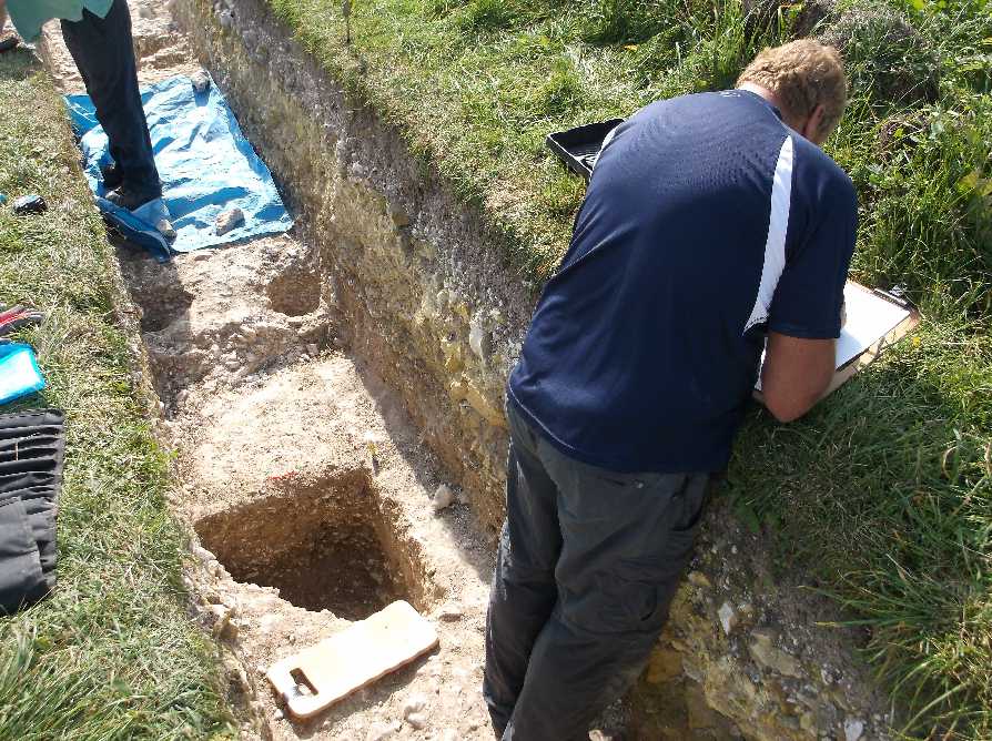 Working in removing the upper fill sin trench 'J' December 2014 |