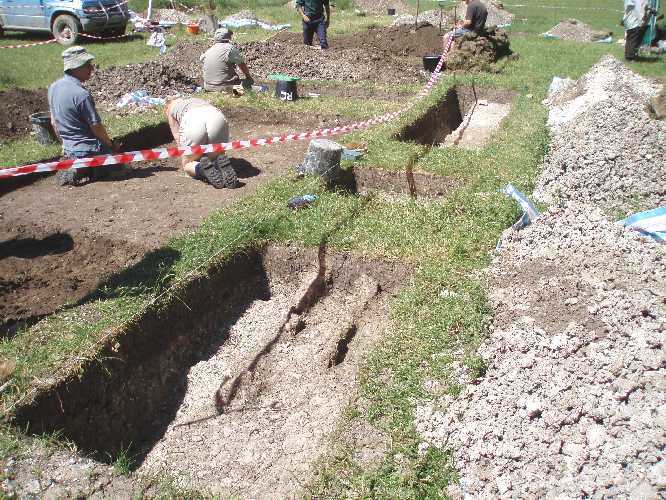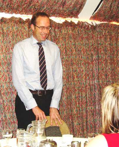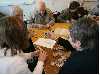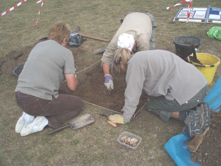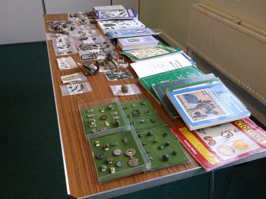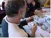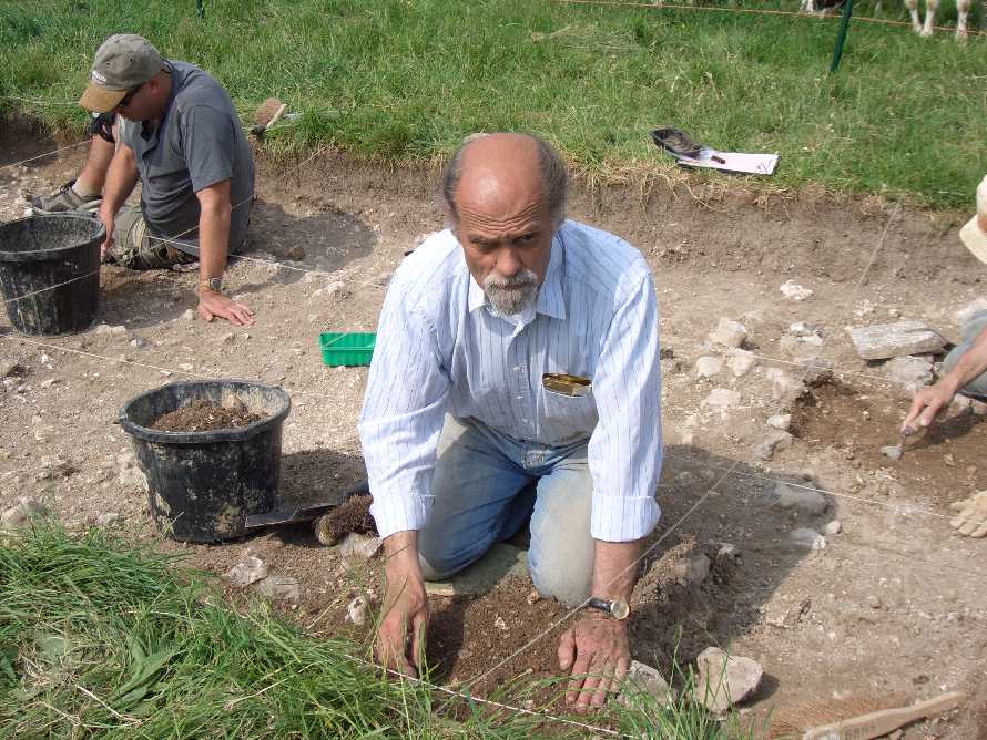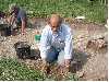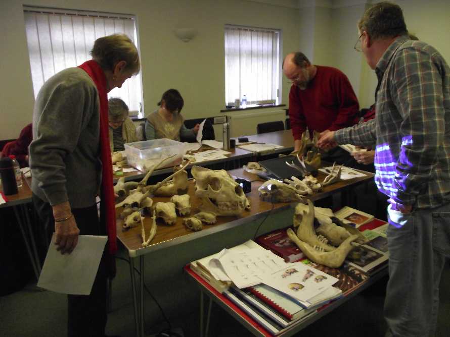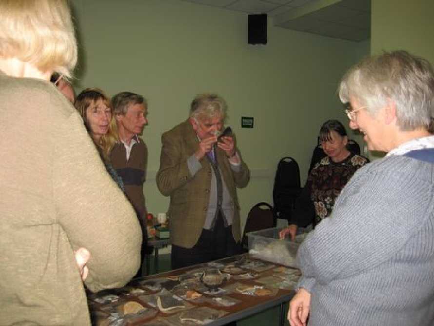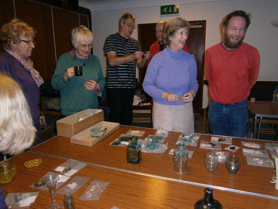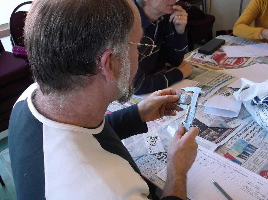 Malcom Lyne examing pottery from Rocky Clump at a dayschool Nov 2011 |