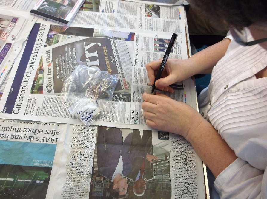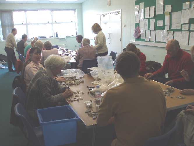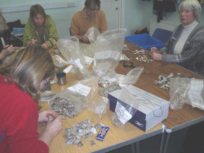 Marking and cataloguing flintwork from Peacehaven in Feb 2012 |