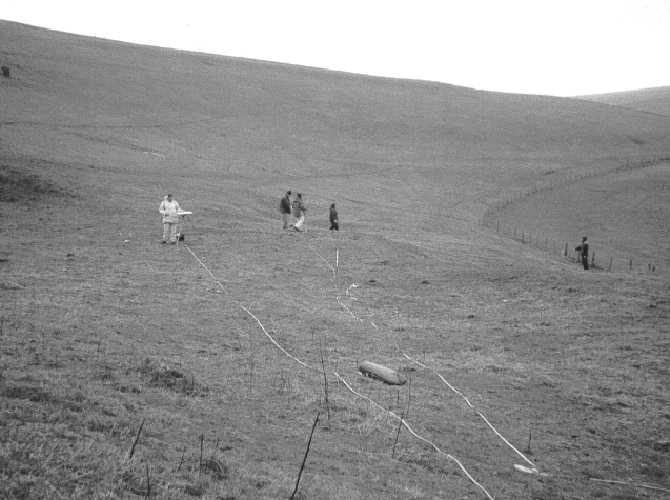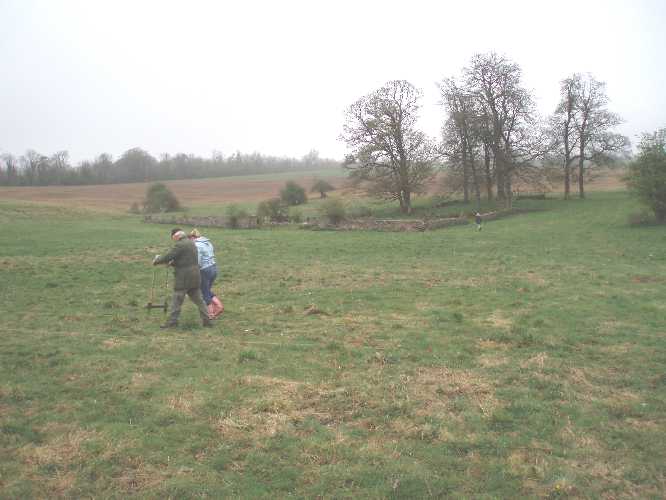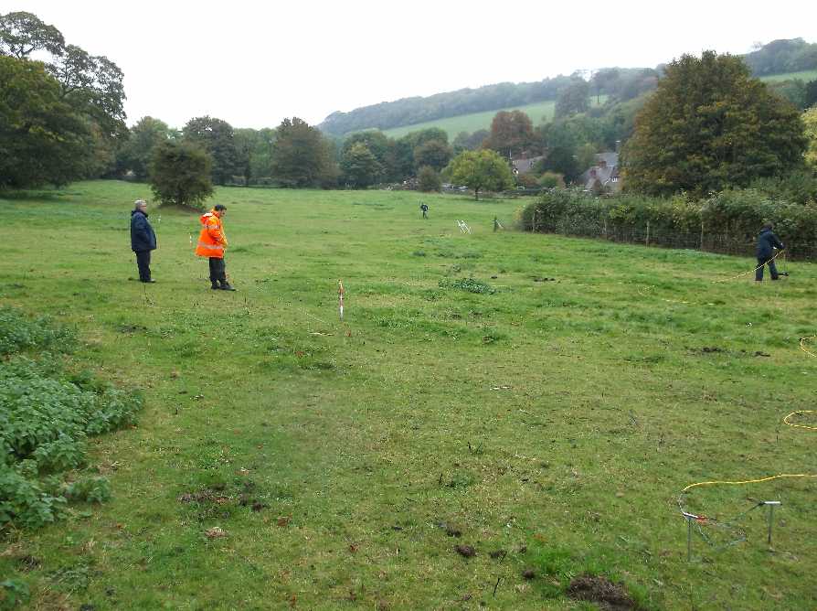 Resistivity surveying in the rain at Stanmer November 2013 |