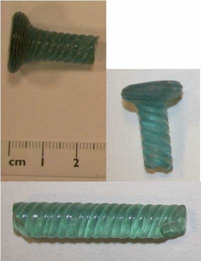 4 A twisted blue stirring rod fragment and green rod