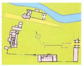 village of the 10th 14th C, ex-tending between the river and